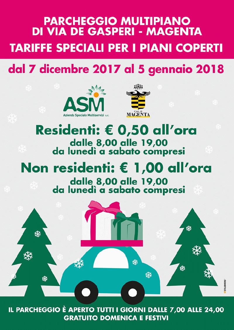 Multipiano: dal 7 Dicembre 2017 al 5 Gennaio 2018 Tariffe Speciali 1 Dicembre 2017 in Avvisi, Comunicazioni Dal 7 dicembre 2017 al 5 gennaio 2018 tariffe speciali per il Multipiano di Via de Gasperi a Magenta. 24 Gennaio 2019